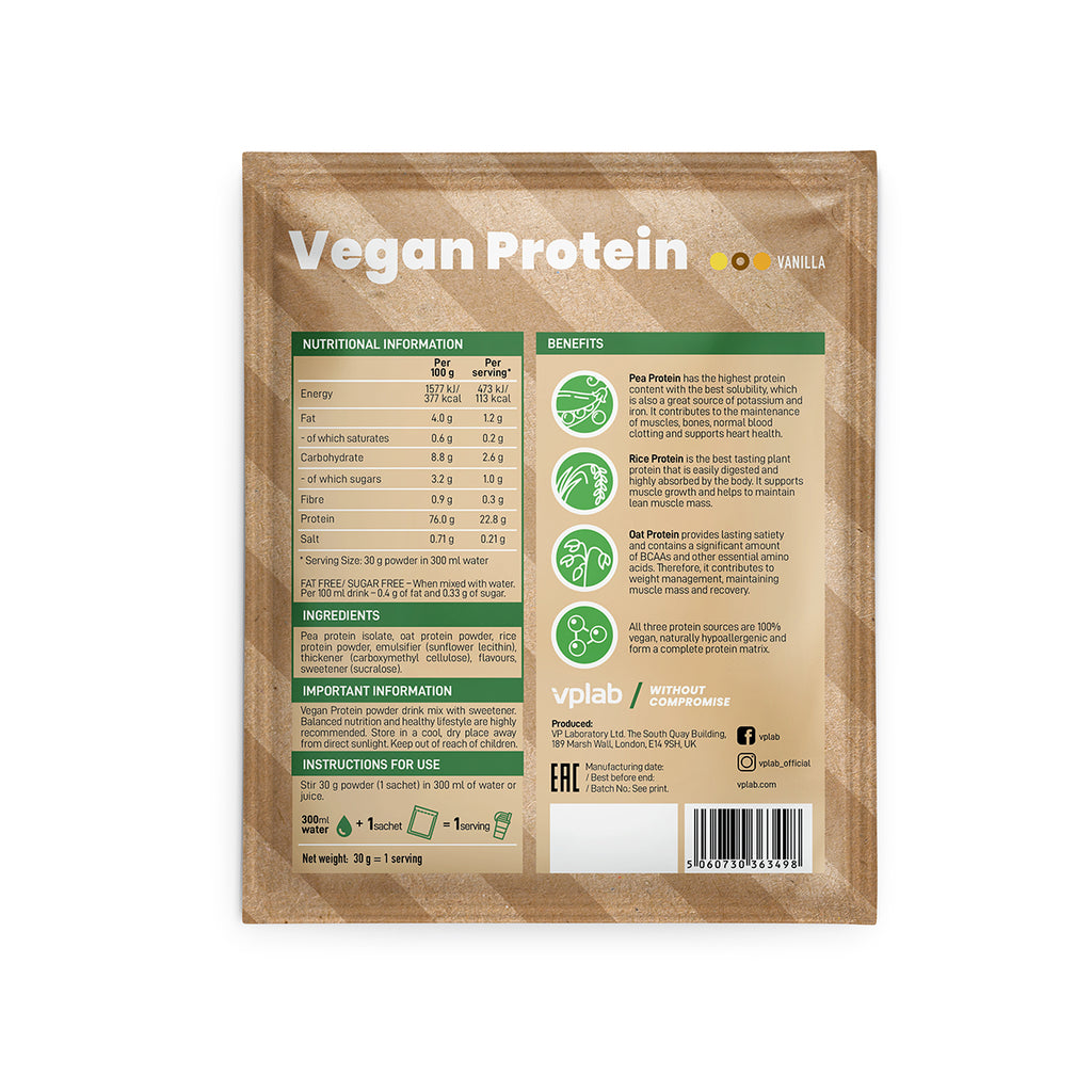Vplab's Vegan Protein is a meticulously crafted blend of three premium vegan protein sources - pea protein isolate, oat protein powder, and rice protein powder. Offering an excellent taste and a complete amino acid profile, this protein blend boasts 76% protein content.