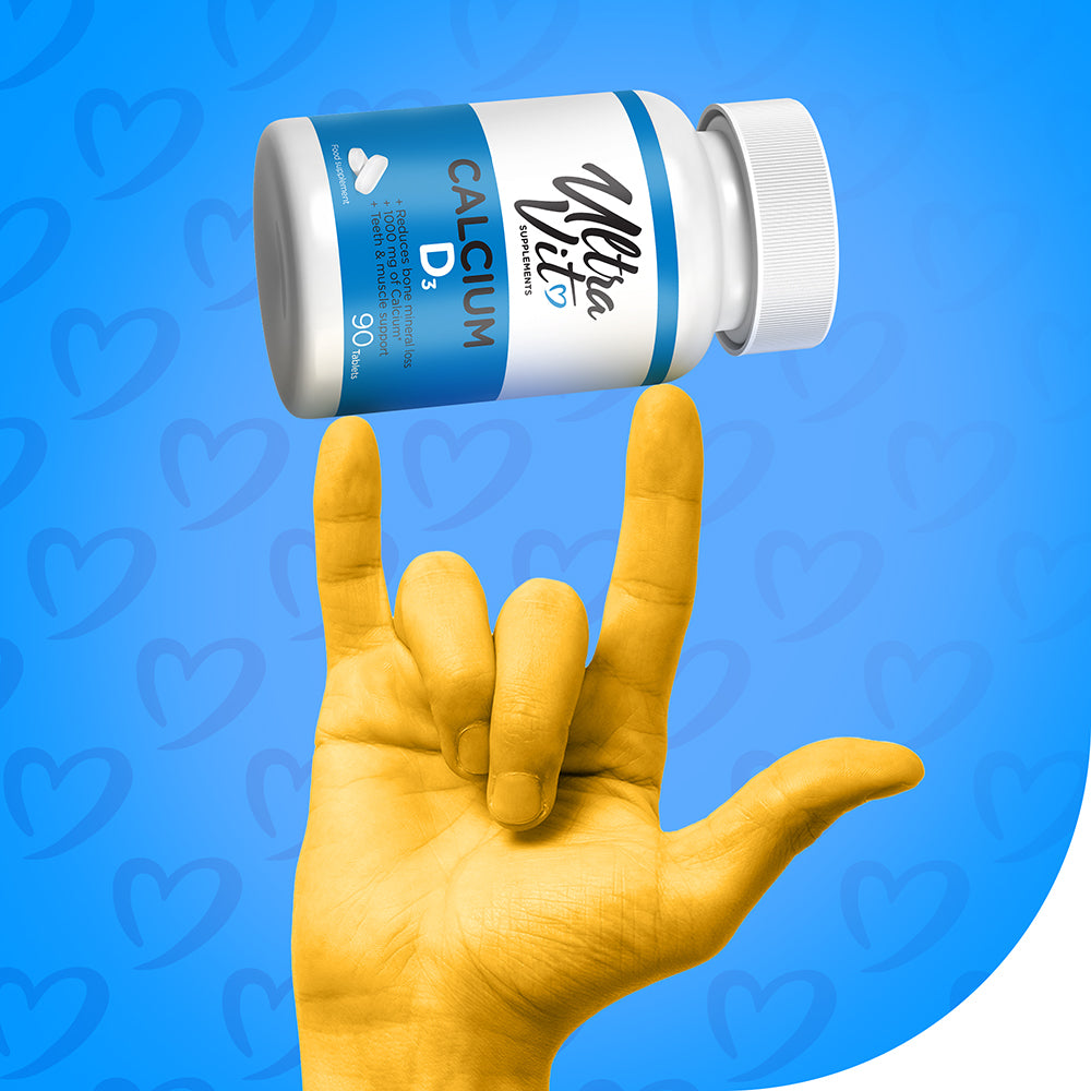 UltraVit's CALCIUM D3 is a vital daily supplement designed to support bone, teeth, and muscle health. This essential formula combines Calcium and Vitamin D3, enhancing calcium utilization and supporting the immune system in 90 easy-to-swallow tablets.