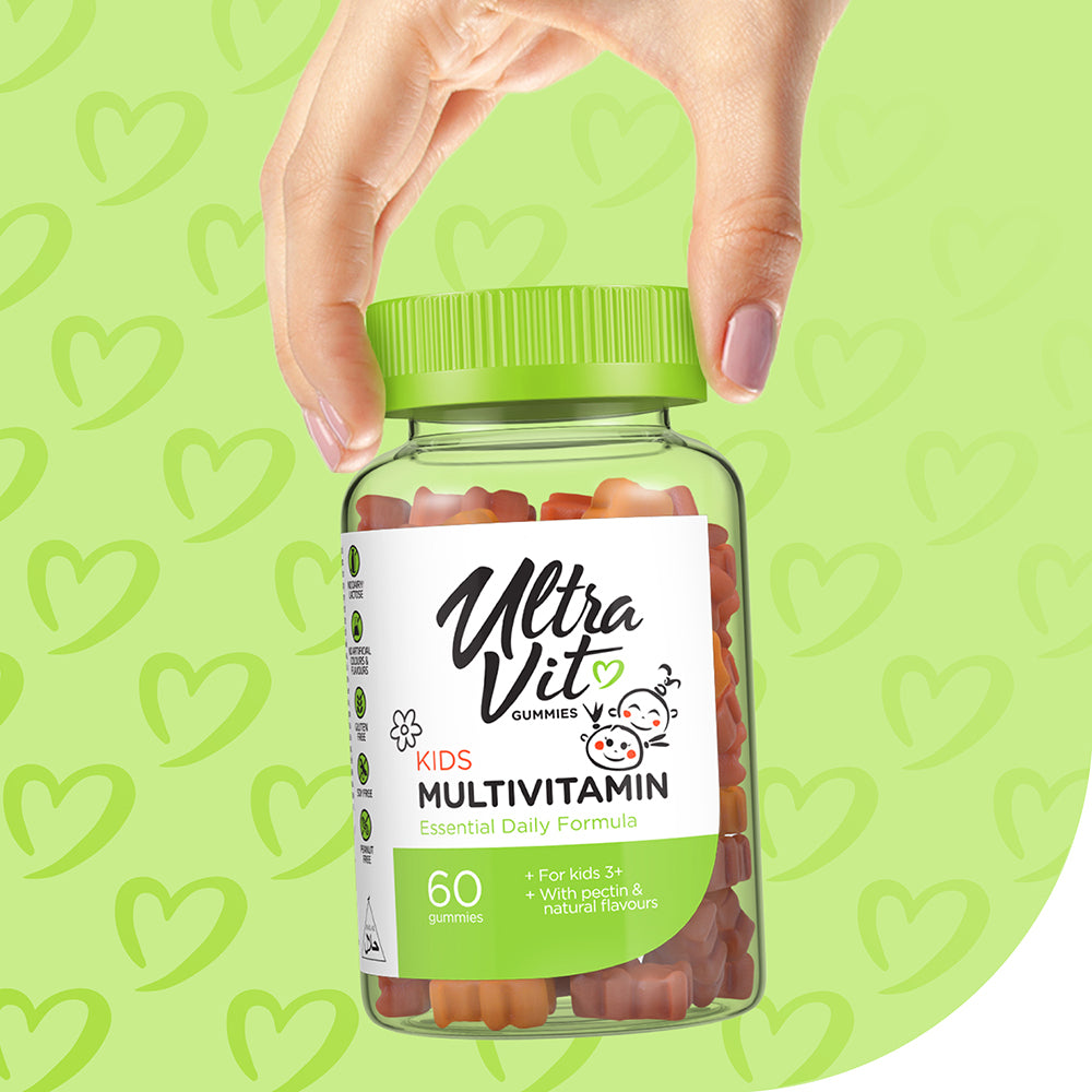 UltraVit's Gummies Kids Multivitamin provides an excellent source of essential vitamins to support the healthy growth and well-being of children aged 3 and up. These delicious gummies, made with pectin and natural flavors, are suitable for vegetarians, making them a great choice for families seeking a comprehensive nutritional supplement.