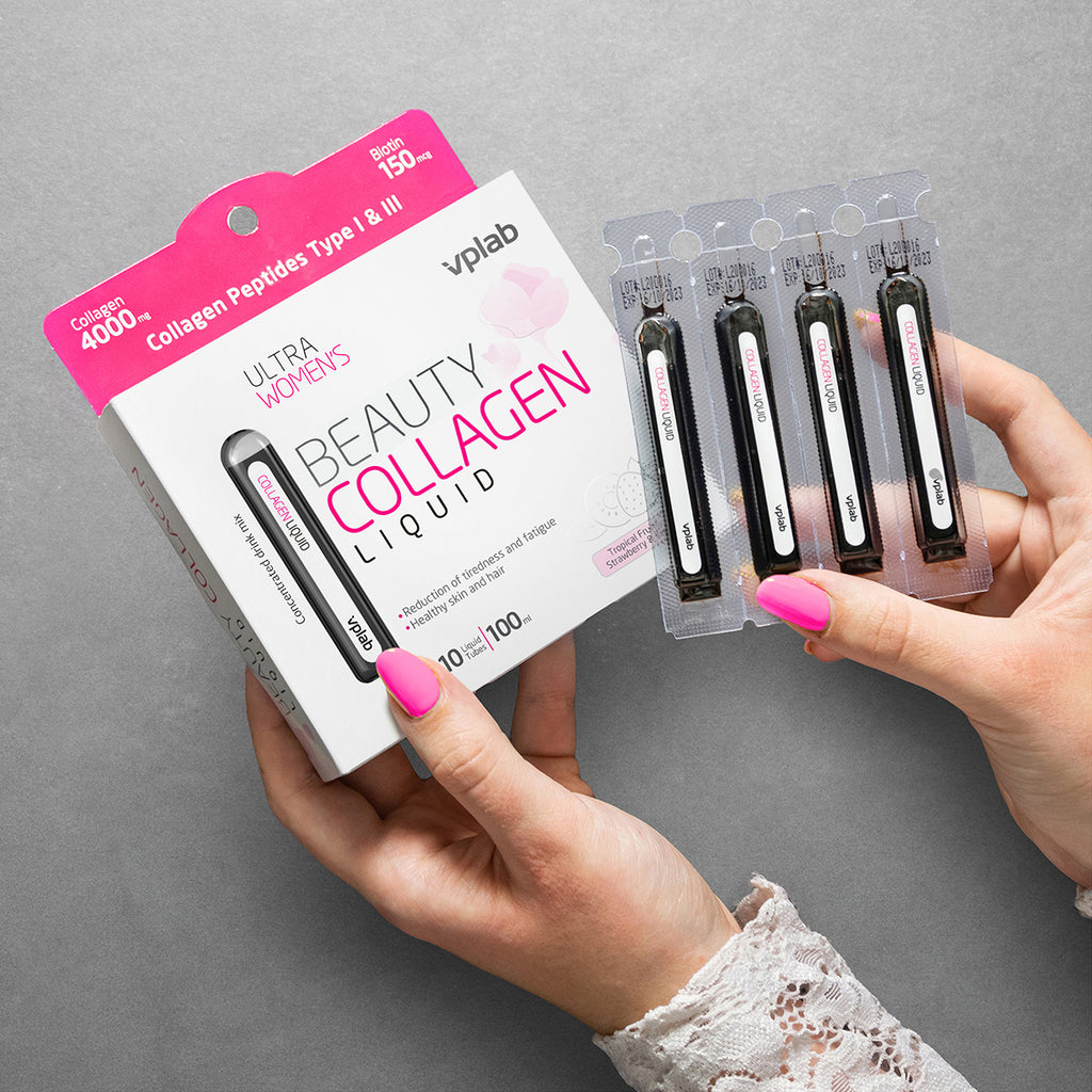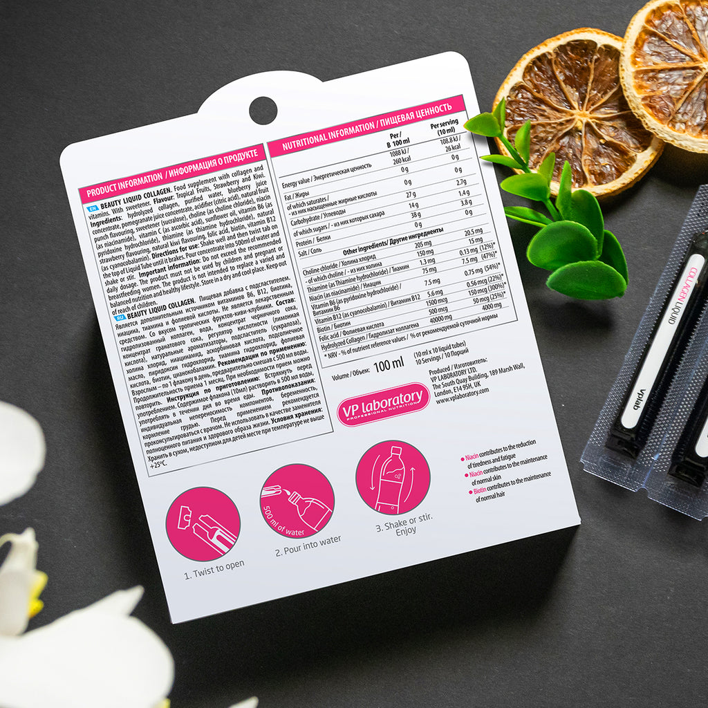 Vplab's Beauty Liquid Collagen is a meticulously crafted liquid supplement designed to enhance the strength and elasticity of your skin, while effectively reducing fine lines, wrinkles, and cellulite. Each pack contains 10 ml x 10 liquid tubes, providing 10 servings of a powerful blend that also combats tiredness and fatigue.